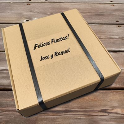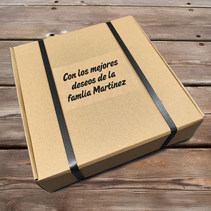 Y además puedes personalizar la felicitación en la caja con el texto que nos indiques.